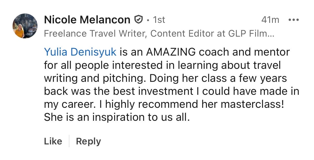 I've been teaching travel media and journalism since 2020, and in that time, I've met and mentored numerous individuals who have gone on to have a career in travel media.